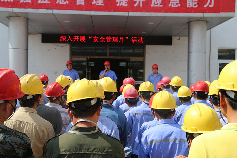 该公司总经理张文学讲话,要求各单位、各部门全体员工高度重视做到全员参与。借本次活动之际,开动思维、营造氛围,提高士气,将本次活动当成实际的工作来抓、来做。以本次活动为锲机,理清思路查找不足,制定措施做好当前工作。做好上合组织青岛峰会安全维稳工作,发动全员,调动所有的眼睛,不留死角、不打折扣、不怕暴露问题查找处理隐患。各级各部门加强安全监管工作,每一项检修工作按照"一项目、一措施"来做,施工前安全措施落实到位,安全监管人员专人监管并对措施进行学习确保水泥公司检修工作杜绝轻伤以上事故,为上合组织青岛峰会议保驾护航。