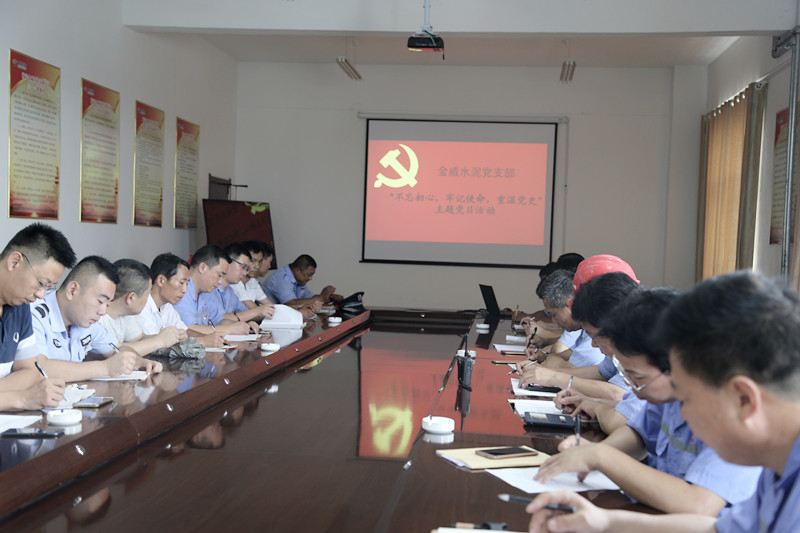 6月28日上午,金威水泥党支部在党员活动中心开展"不忘初心,牢记使命,重温党史"主题党日活动。支部全体党员、入党积极分子、公司领导班子成员以普通党员身份参加活动。