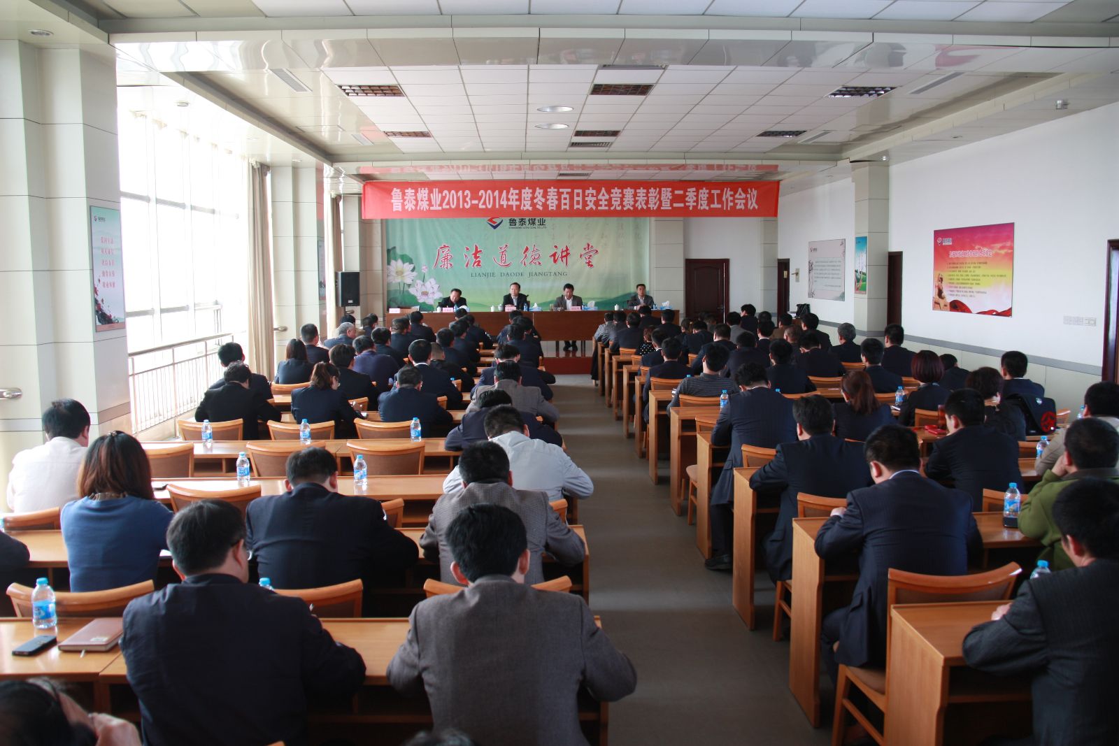 公司总经理李合军出席会议并作重要讲话。会议由副总经理薛培华主持。副总经理关延忠总结了冬春百日安全竞赛活动开展情况,简要概括了一季度开展的重点工作,并对二季度安全生产工作重点进行了安排。副总经理王付清宣读《山东鲁泰煤业有限公司关于对"13-14年度冬春百日安全"竞赛活动进行总结表彰的通知》。