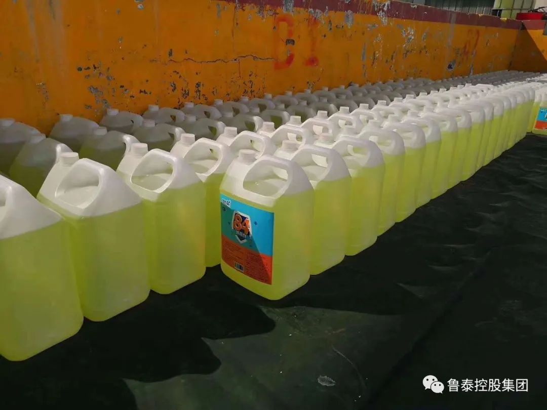 为更好地协助社会各界抗击疫情,积极履行国有企业社会责任,3月8日,集团公司首批“鲁泰星”牌84消毒剂成功投放市场。首批产品共有5L、10L、20L三种规格,非常方便各企业、店铺及社会群众使用。