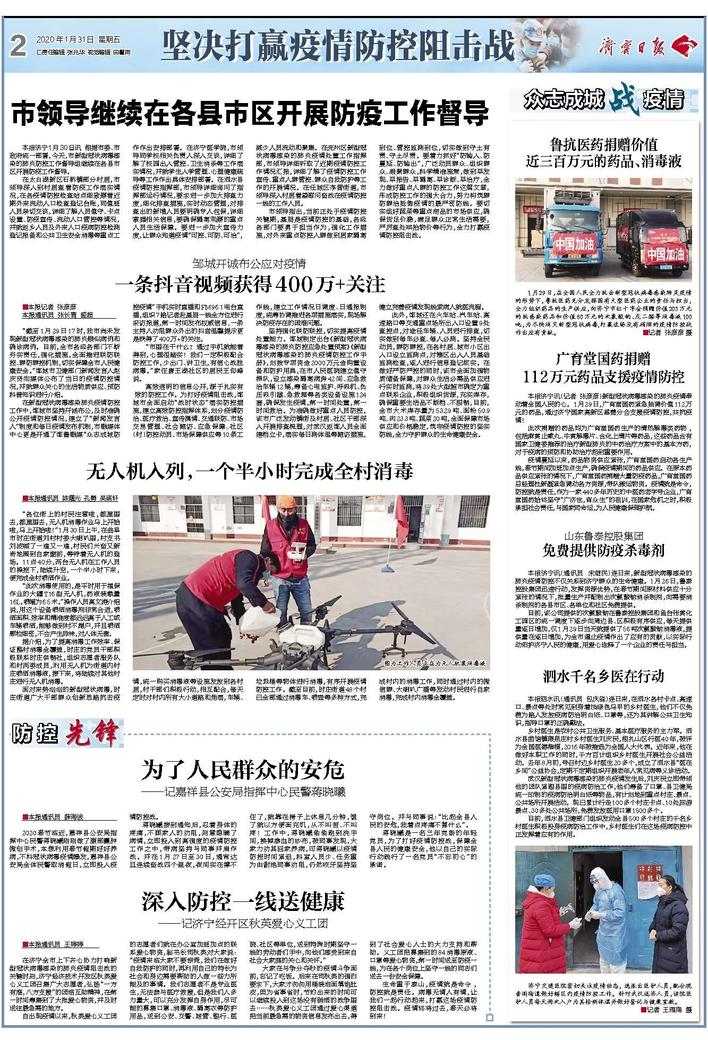 【济宁日报】山东鲁泰控股集团免费提供防疫杀毒剂